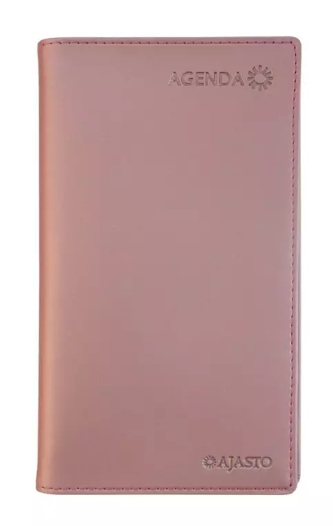Koko 85 x 162 mm; leatherette-kannet; parikierresidottu; aukeamalla pystyviikko; päiväkirja 48/2025–1/2027; vuosisuunnitelmat 2026 ja 2027; kansalliset vapaapäivät; suomalaiset nimipäivät; muistiinpanosivuja; Euroopan kartta; kynänpidike; Avainlippu-tuote; FSC®-sertifioitu tuote.