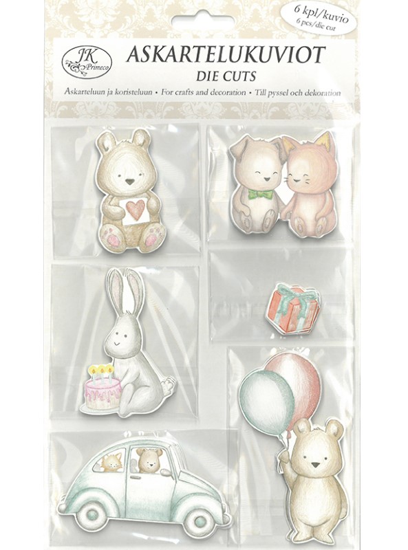 Askartelukuviot askarteluun ja skräppäilyyn. 6 erilaista kuviota, jokaista pakkauksessa 6kpl. Sisältää glitteriä!