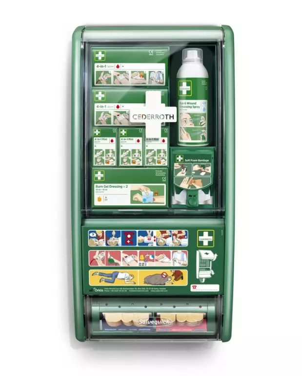 - Sisään asennettuna Soft- laastariannostelija, sisältäen Cederroth Soft laastari Beigen, 6 cm x 2 m (REF 51011019)
