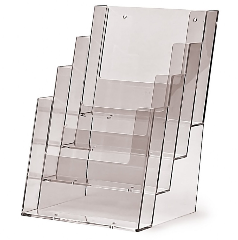 - Kirkkaasta akryylistä valmistettu esitepidike.