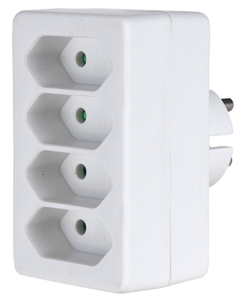 AIRAM 4-os. Eurohaaroitin Sisäkäyttöön. Sopii euro- ja suko-pistotulppaisille johdoille. Lapsiturvallinen. IP-Luokka: IP20. Väri: valkoinen.