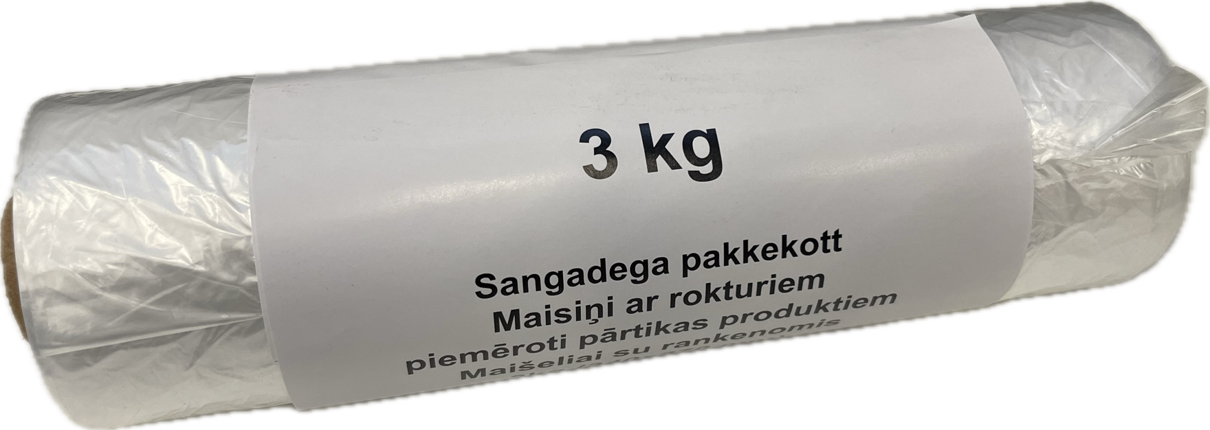 Kirkas muovinen elintarvikekelpoinen muovipussi, jossa henkselikahvat.