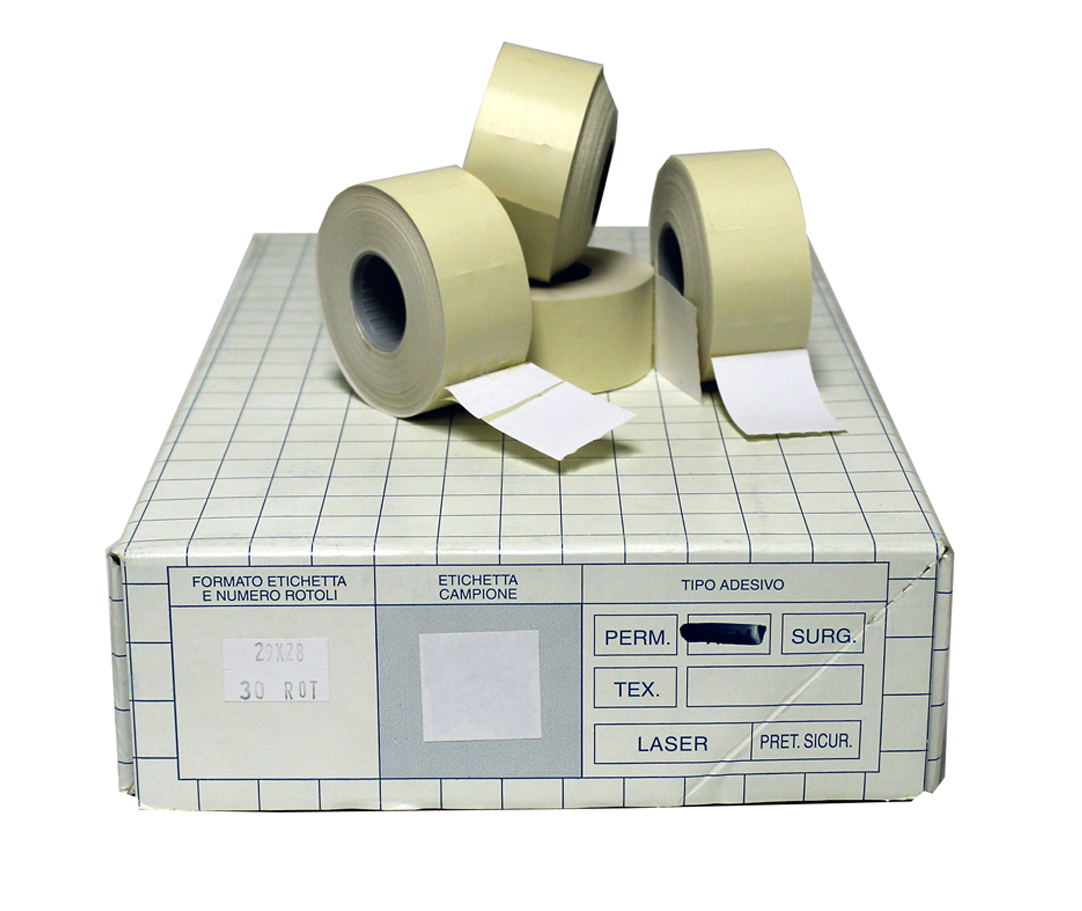- Esipainettu etiketti 29x28mm valkoinen irtoavalla liimalla