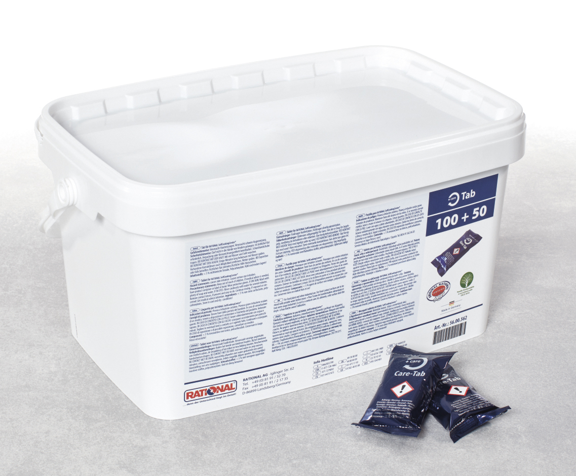 Cleanjet Care-tabletti sopii Metos System Rational Self Cooking Center-kypsennyslaitteen kypsennystilan ja höyrynkehittimen hoitoon.