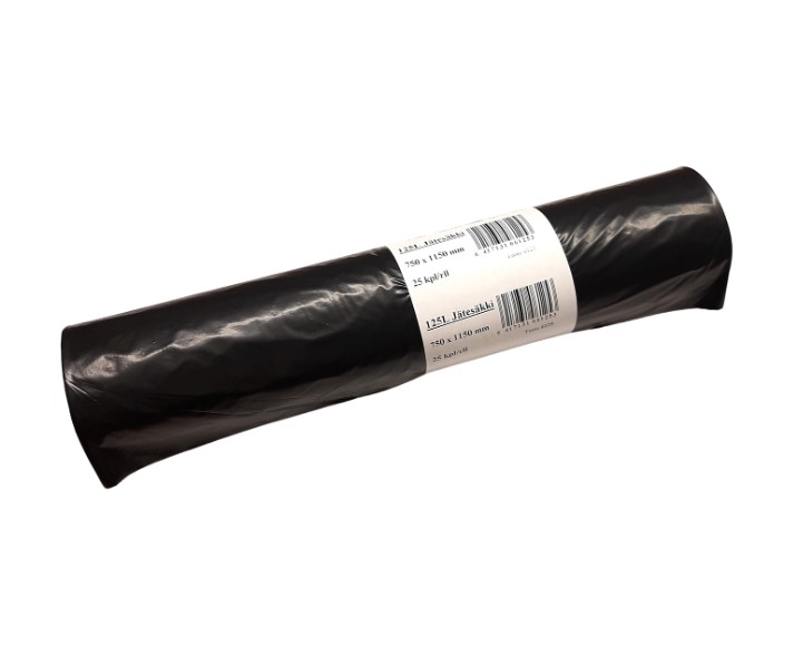 Keskivahva, 0,04mm, 125 litran musta jätesäkki. Riittoisa 25 kappaleen rulla!6rll/ltk
