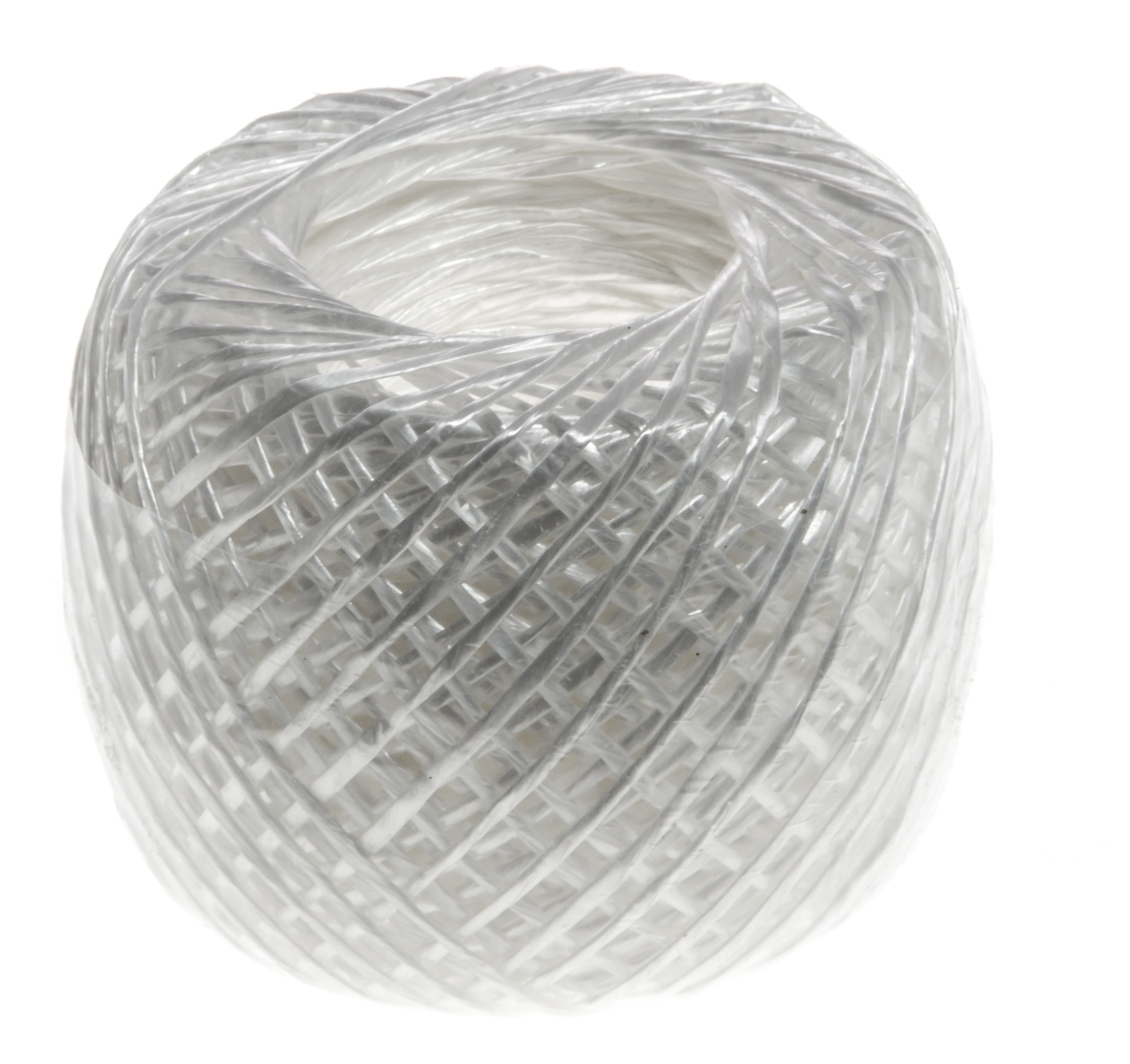 Noin 115 m. Polypropeeni. Valkoinen. Erinomainen pakkausnaru. Kestää kosteutta.