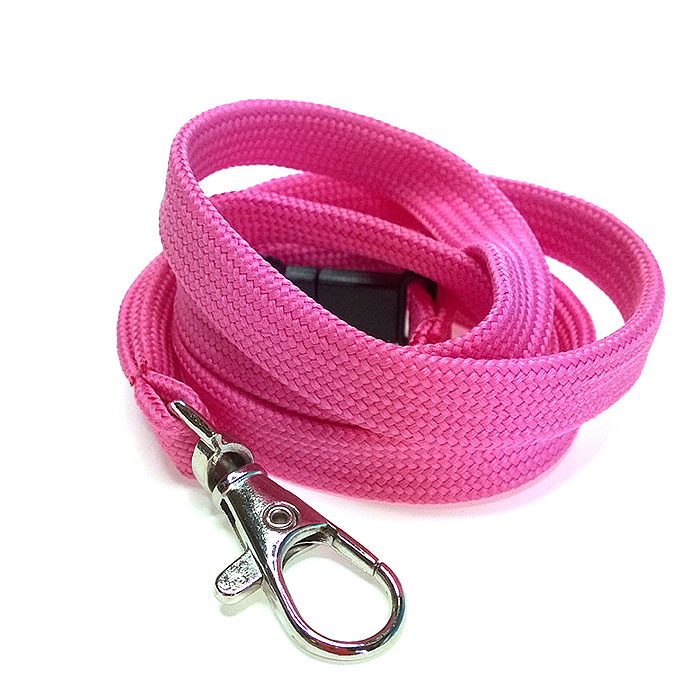 Putkeenkudottu tuubikaulanauha, jossa niskassa turvalukko ja kiinnikkeenä papukaijakoukku. Valmistusmateriaali polyesteri.