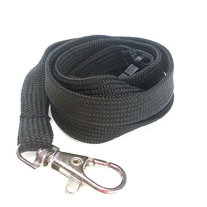 Putkeenkudottu polyesterinen tuubikaulanauha, jossa niskassa turvalukko ja kiinnikkeenä papukaijakoukku.