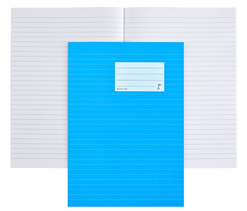 A4 kokoinen 20 sivun nidottu vihko kouluun tai vapaa-aikaan.