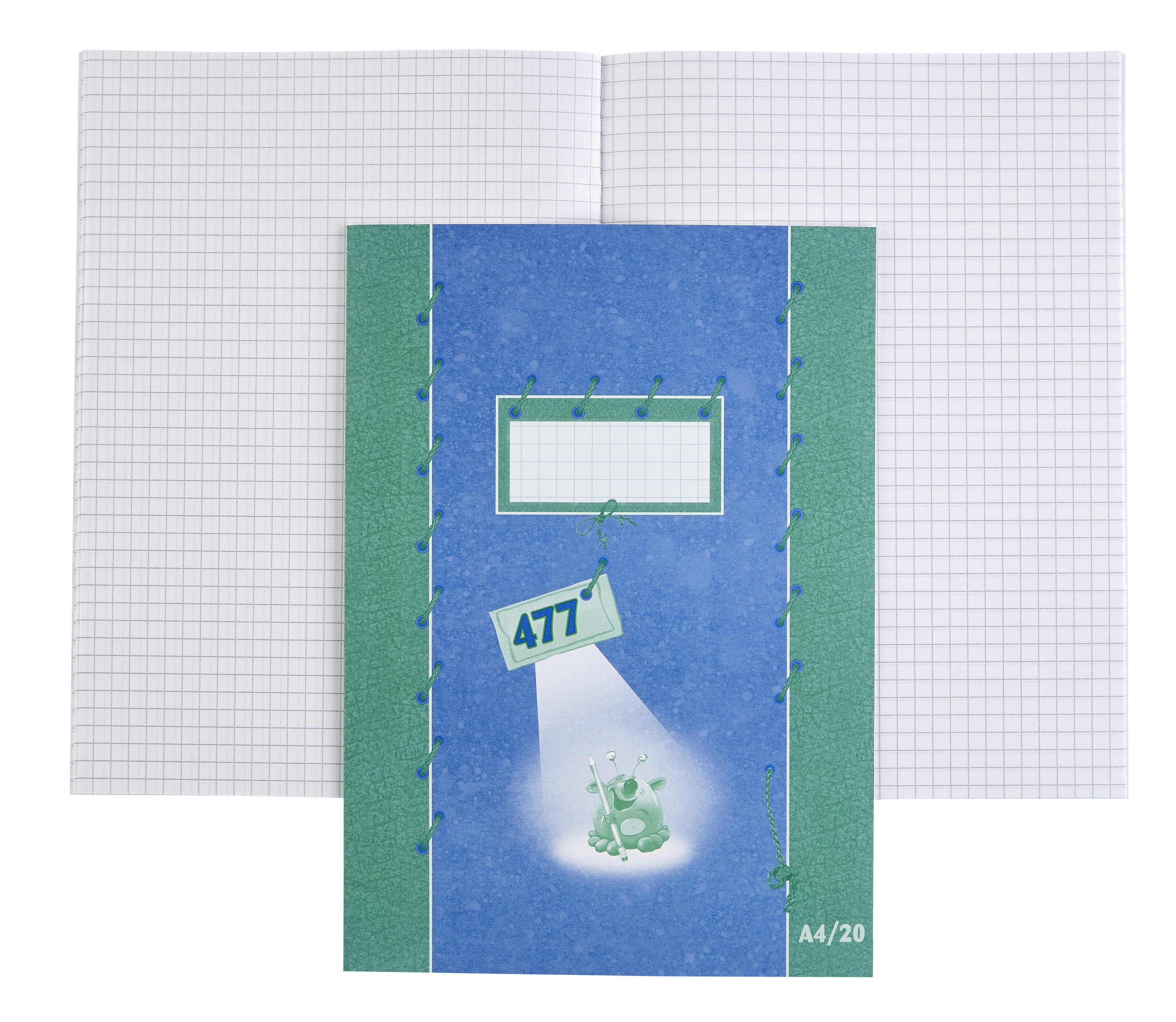 A4 kokoinen 20 sivun nidottu vihko kouluun tai vapaa-aikaan.