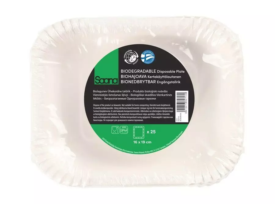 Saana pinnoitteeton paperilautanen on 100% kompostoituva ja biohajoava.