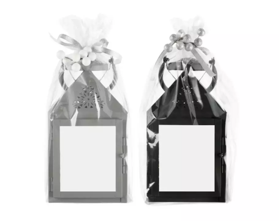 Kuvassa idea, kuinka voi lyhdystä tehdä lahjapakkauksen. Tuotteeseen ei sisälly kääremateriaalit.