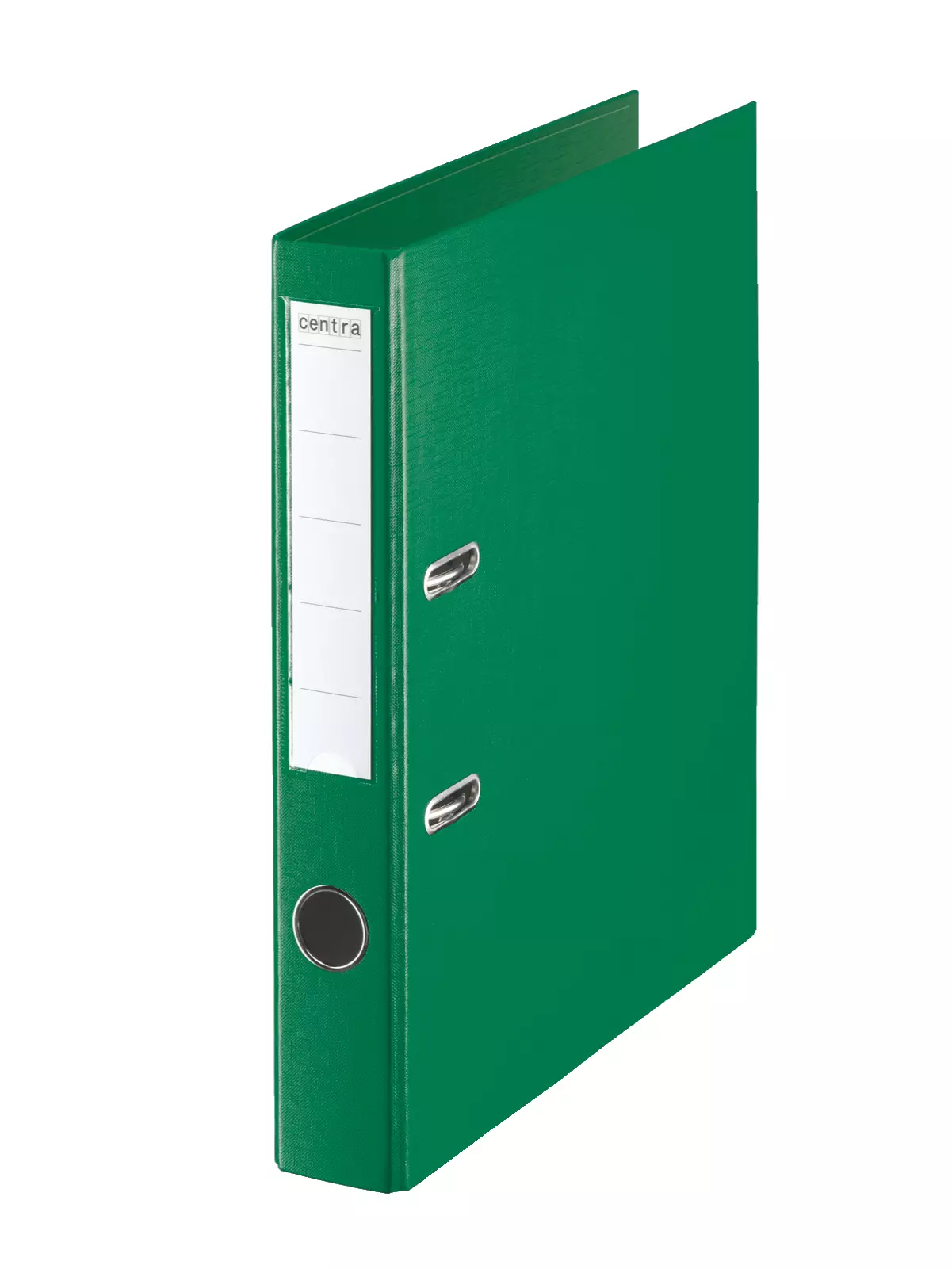 Centra mappi 50mm/A4 vihreä Päivittäiseen käyttöön tarkoitettu PP mappi. 350 A4 arkin kapasiteetti (80 gsm). 50mm selkämys. Mitat: 52x318x287mm. Paino 0,5kg.
