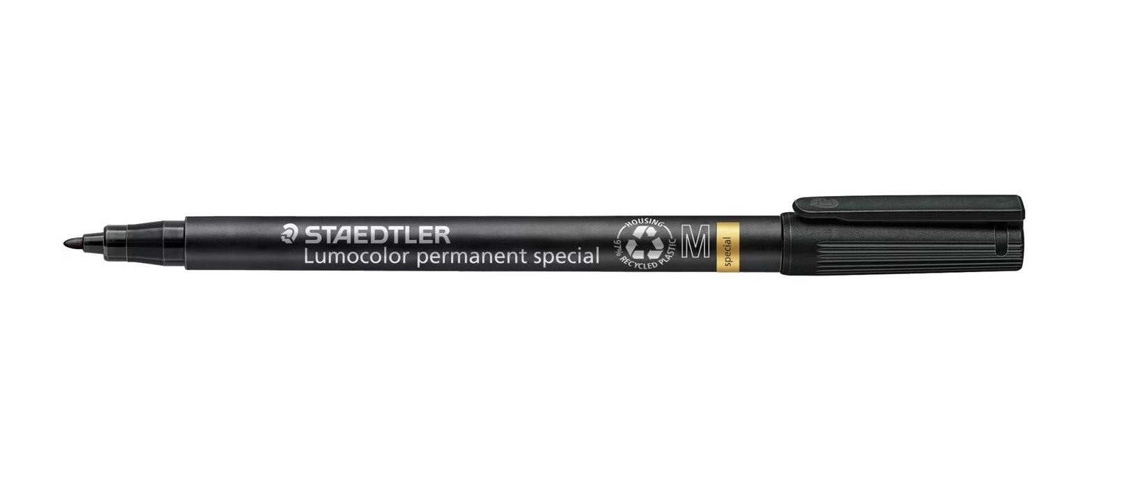 Staedtler Lumocolor Special 319M-9 soveltuu ulkokäyttöön sekä pyykin ja lasin merkkaukseen. Jälki kuivuu 3-6 sekunnissa.