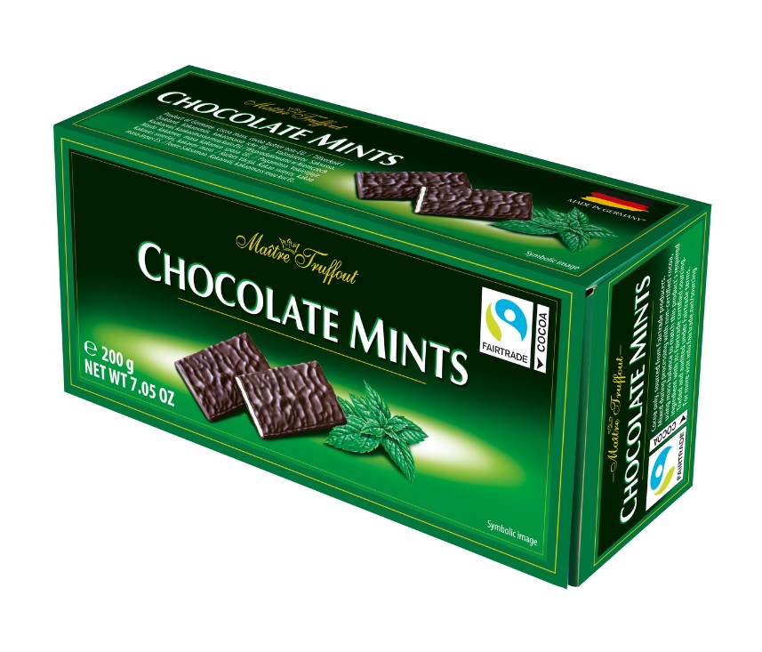 Ohuet After Eight -tyyppiset suklaamakeiset, joissa tumman suklaan sisällä pehmeä minttutäyte. Suklaissa käytetty sertifioitua Reilun kaupan kaakaota.