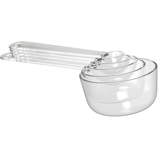 - Sisältää seuraavat mitat: maustemitta (1 ml), teelusikka (5 ml), ruokalusikka (15 ml), ½ desilitra (50 ml) ja 1 desilitra (100 ml)
