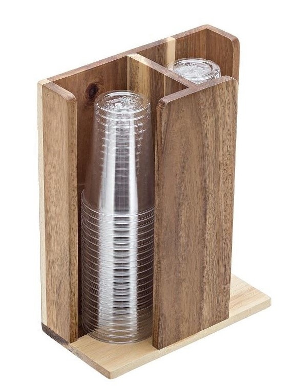Kaksilokeroinen akaasiapuinen mukiteline maksimihalkaisijaltaan 90 mm -kokoisille mukeille. Mukit eivät kuulu pakkaukseen.