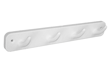 Perinteinen 4-koukkuinen naulakko vaatteiden, pyyhkeiden ym. ripustukseen. Hakusanat: naulakko, koukku, vaatekoukku, vaatenaulakko