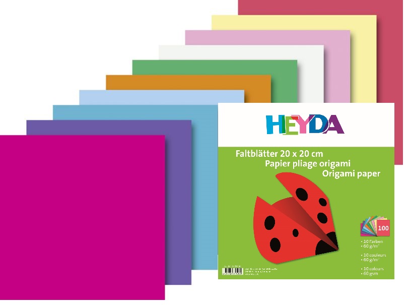 HAYDA Origamipaperilajitelma 20 x 20 cm, 60 g/m2. Värilajitelma, 10 x 10 väriä. Yhteensä 100 arkkia. Värit: keltainen, oranssi, punainen, violetti, vaaleanpunainen, vaaleansininen, tummansininen... Lue lisää