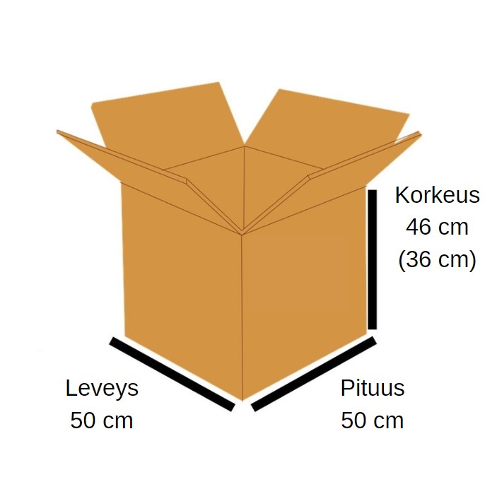 - Mikäli korkeusmitoissa on merkintä esim. 190/150, voidaan pahvilaatikko helposti madaltaa alempaan mittaan.