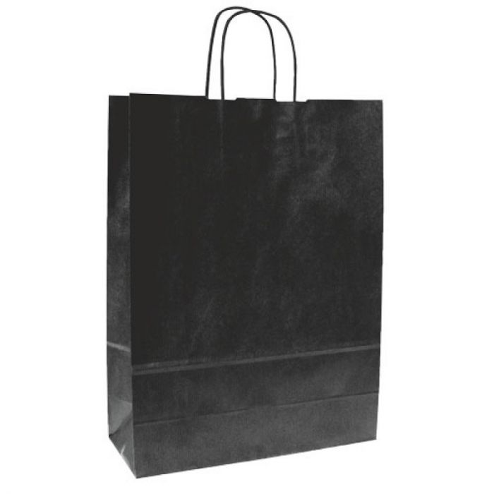 Paperikassi valmistettu ruskeasta riplatusta voimapaperista Kassin ulkopuoli musta, sisäpuoli ruskea Mustat paperinyörikannikkeet