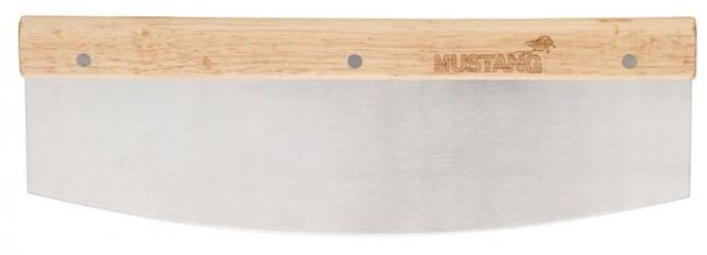 Mustang-pizzaleikkuri, jossa tukeva puukahva Mustang-logolla. Hakusanat: pitsa, pitsaleikkuri