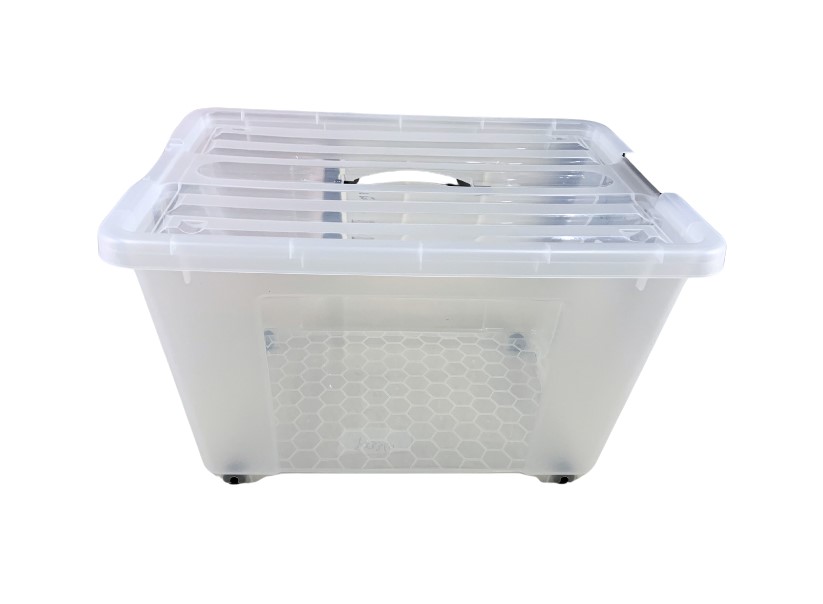 Kannellinen varastolaatikko pyörillä. Vetoisuus 90 litraa.