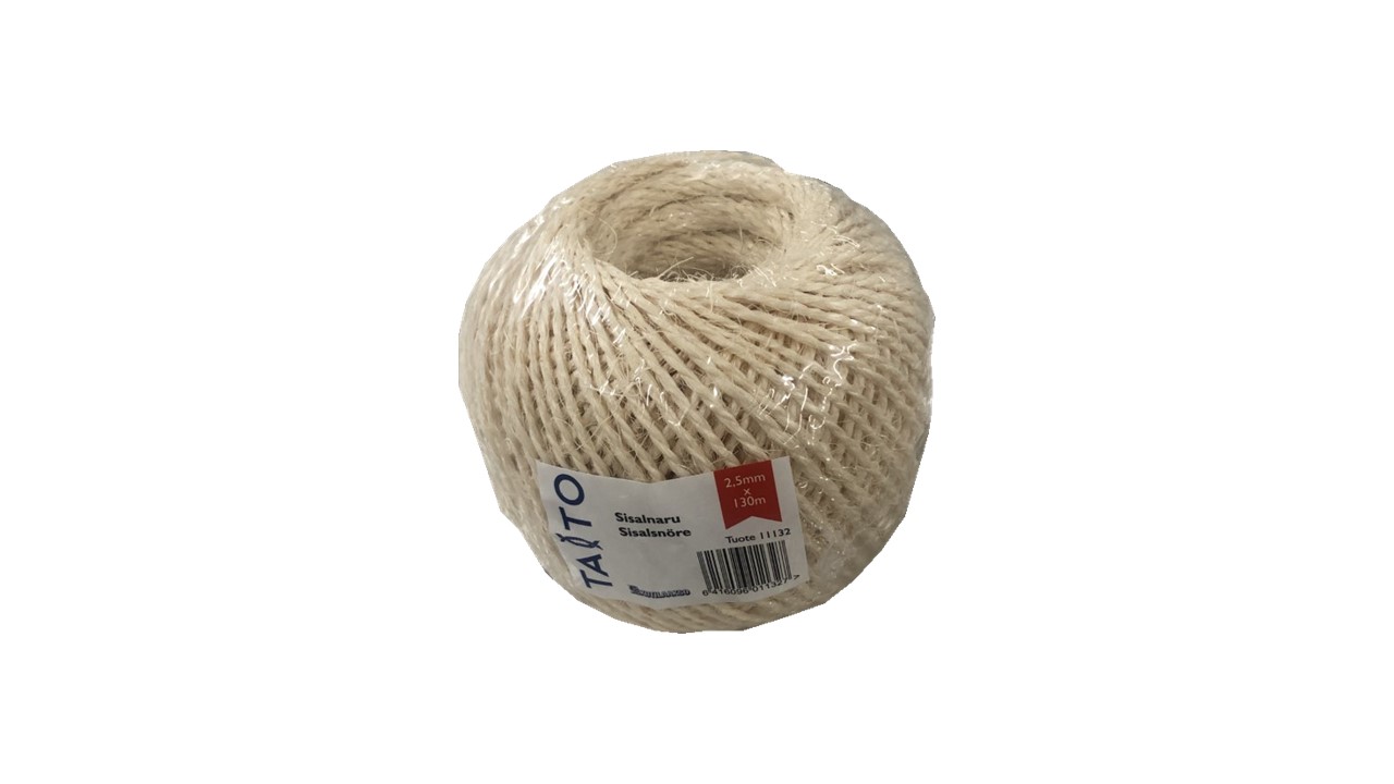 Sisal on 100% luonnonkuitu - materiaali palmun lehtiruoko - erittäin suuri vetolujuus Sisalia voidaan värjätä tai suojata UV-suojalla Sisalkuitu kutistuu ulkokäytössä 10-15% Tuotteen voi hävittää polttamalla Saatavana eriväreissä