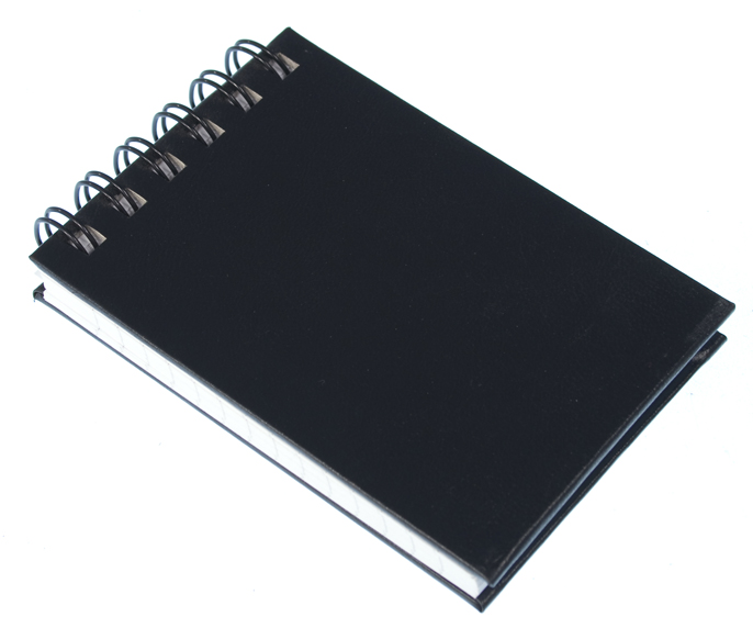 Kovakantinen kierresidottu viivavihko. Hakusanat: muistikirja, muistilehtiö