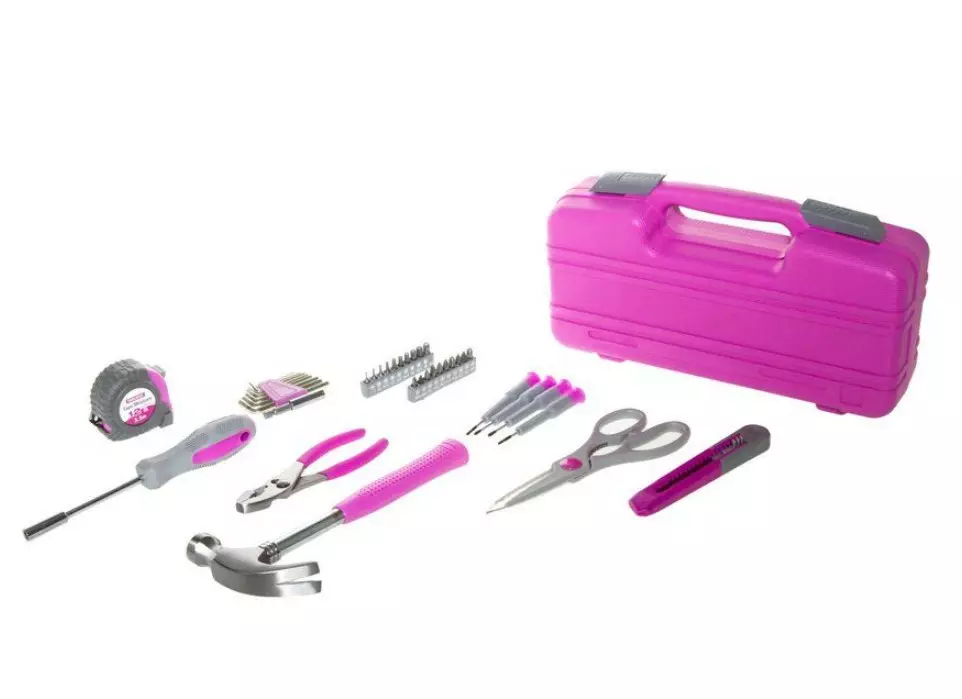 Sisältää mm. vasara, mitta, ruuvimeisseli, 19 vaihtopäätä, 8 kuusiokoloavainta, sakset, katkoteräveitsi sekä työkalusalkku.