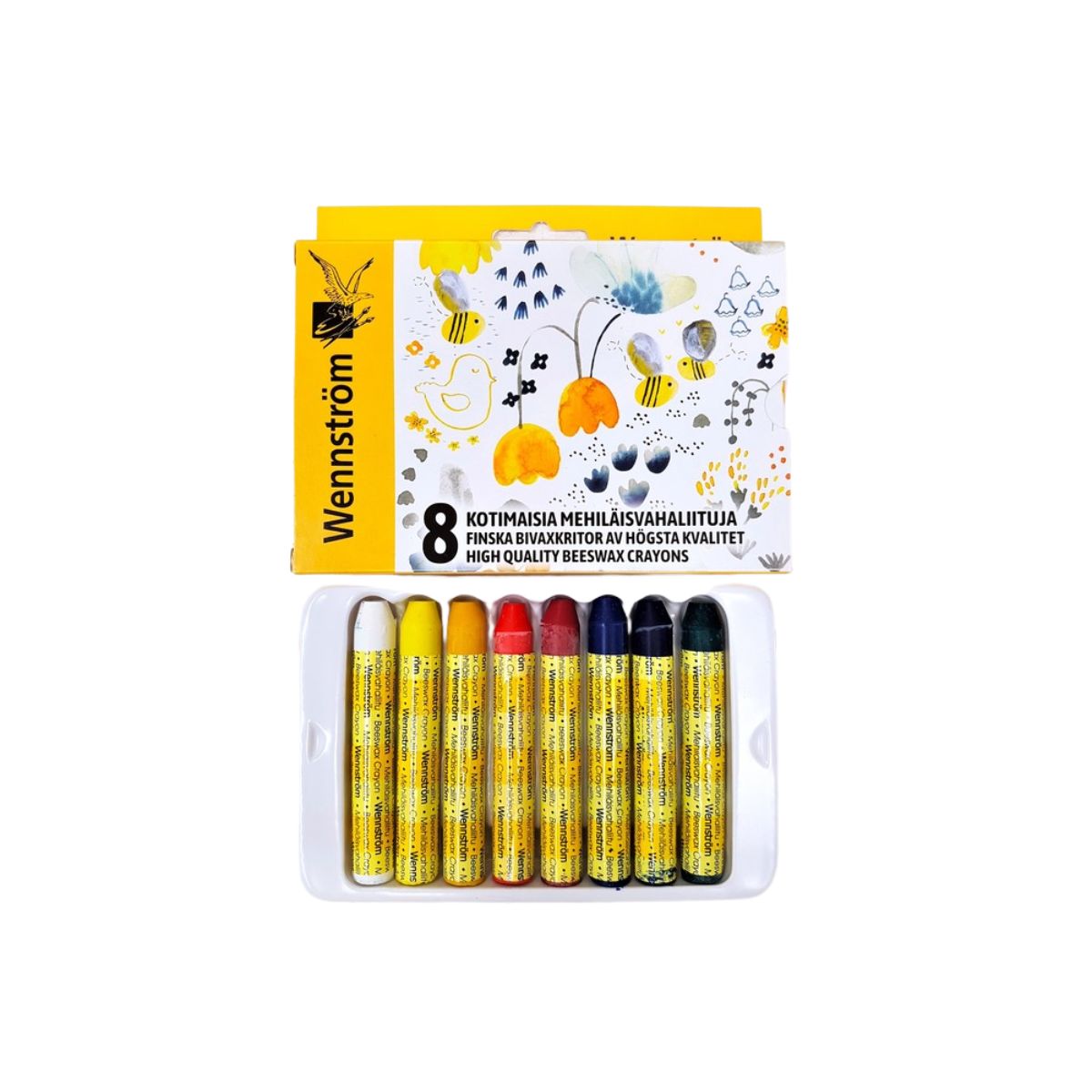 Wennströmin kotimaiset mehiläisvahaliidut 8 värin rasiassa. Liidut ovat paperoituja. Niiden pituus on 80 mm ja halkaisija 12 mm.